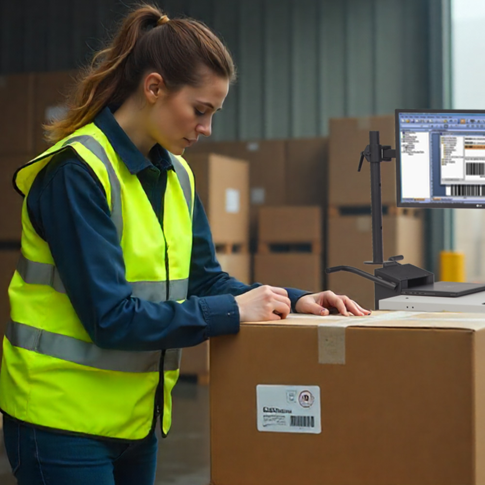 Integrated scanning and computing hardware allow workers to verify product information and generate accurate labels on the spot.